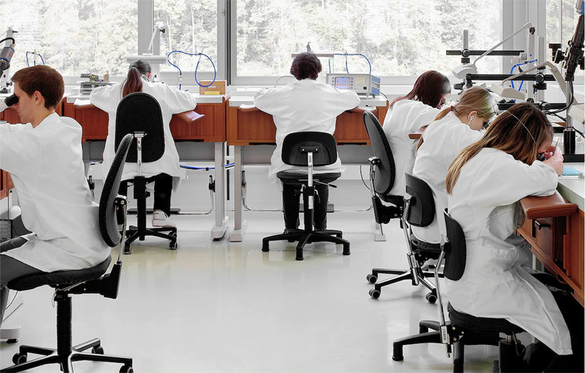 廣州雷達維修專家們身著白色制服,在配備專業(yè)儀器的工作崗位上凝神靜氣,一心專注于眼前的工作。廣州雷達工坊的工作氛圍講求寧靜致遠,全心投入創(chuàng)造卓越品質(zhì)。廣州雷達的專業(yè)表匠均具備廣泛技能與專業(yè)學(xué)識,只為精準(zhǔn)無誤且持續(xù)耐久的機械時計。他們是廣州雷達腕表走時精準(zhǔn)、品質(zhì)斐然的保障,也是品牌時計卓著聲譽的幕后功臣。